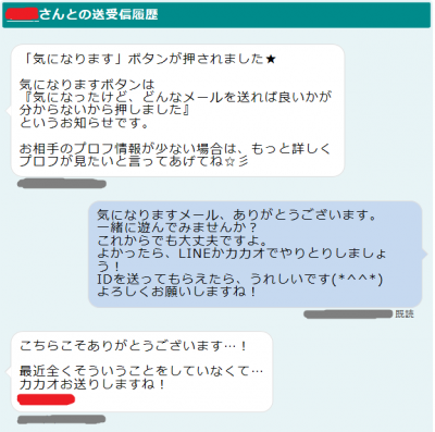 出会い系サイト内ではわずか1通のメールだけで、カカオトークのIDをゲットしちゃいました。