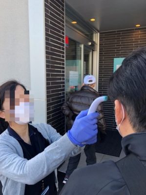 ホテルのフロントに到着すると、最初に体温を測定されました。