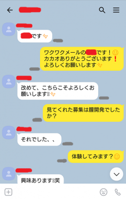 ワクワクメールで知り合ってから2週間後の約束だったので、それまでカカオでけっこうやりとりをしていました。